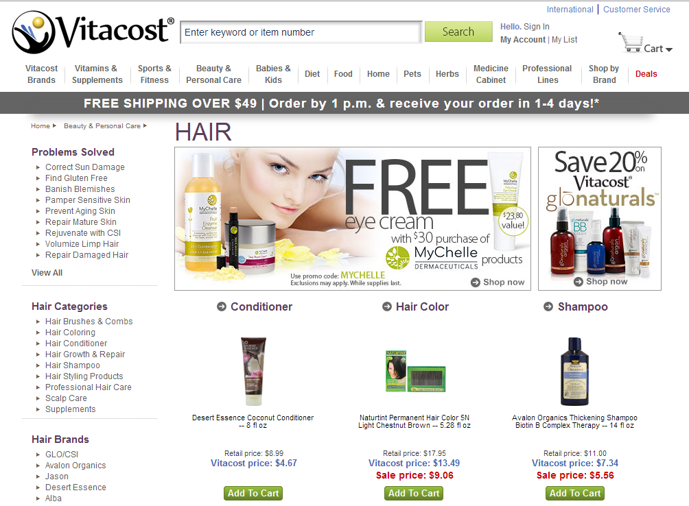 • Les prix, également plus avantageux. Le site propose des offres bien meilleures que celles de iHerb, par exemple, de temps en temps, certains produits ont une offre de type un acheté, le deuxième à 2$ (pour les shampoings et après-shampoings, c'est très avantageux). Vous le voyez sur la capture d'écran, les produits Desert Essence sont également moins chers que sur iHerb.