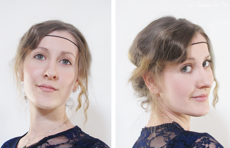 J'aime beaucoup mettre les headbands bijou "à l'envers", ça donne un effet particulier à la coiffure. Plus vos cheveux sont longs, plus il faudra faire la queue de cheval haute pour pouvoir enrouler les cheveux par la suite. Vous pouvez également piquer des petites pinces ou barrettes dans votre coiffure si vous n'avez pas de headband. C'est également sublime avec de vraies fleurs bien sûr !