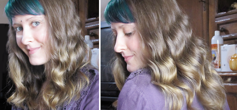 Pour ce qui est du résultat, il est très convaincant pour moi ; cheveux propres, doux, volumineux... Et surtout très très brillants ! En revanche ce mélange emmêle mes cheveux, il faut donc que j'attende qu'ils soient totalement secs pour les démêler (sous peine de casse et donc de fourches !) et je ne me vois pas remplacer chaque shampoing par celui-ci. Aussi, le lait de coco est connu pour redonner du ressort aux boucles, je suis donc bien contente, après un peu de scrunching, de retrouver mes ondulations perdues. C'est aussi pour cette raison que j'ai intégré ce shampoing-masque-soin (décidément, je ne sais pas comment le qualifier !) à ma routine.