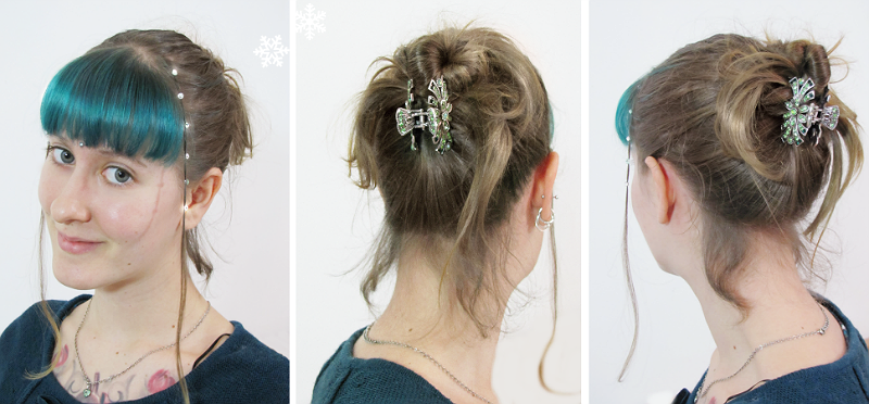 Aujourd'hui, c'est une autre coiffure pour les fêtes que je vous présente ! Toujours facile à réaliser, avec un accessoire qu'on a tendance à laisser de côté... La pince crabe ! Voici donc un chignon étincelant pour briller le soir de Noël.