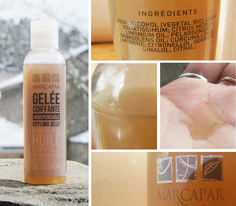 J'allais le dire, cette gelée coiffante est assez simple à refaire chez soi, si l'on ne veut pas mettre aussi cher dans un gel ou si on n'a pas un coiffeur qui en vend près de chez soi (à Bordeaux, pour info, il y a un salon bio marcapar et il est très bien!) : il suffit de faire chauffer des graines de lin dans de l'eau, et on obtient du gel de lin (il y a plein de blogs qui expliquent précisément comme s'y prendre), qu'il n'y a plus qu'à diluer et rajouter éventuellement d'autres composants (comme les huiles essentielles que comprend la gelée marcapar). Il faut juste trouver le bon dosage de gel de lin pour que cela ne cartonne pas (bon, c'est pas si évident que cela!).