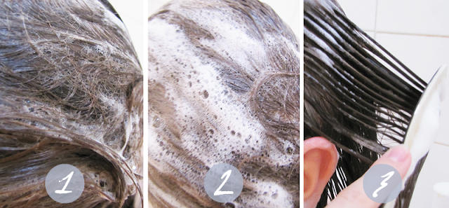 J'ai fait trois applications sur tête entière, une application sur deux mèches devant et deux applications sur les longueurs.