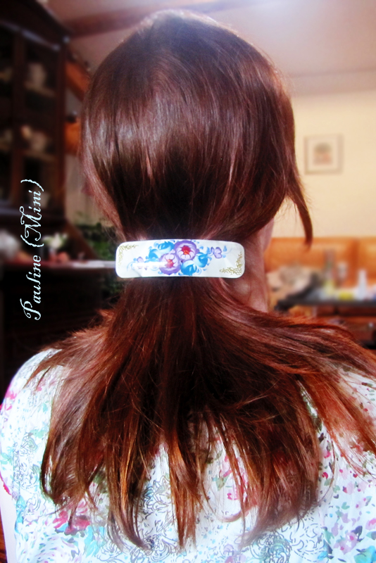 J'en profite pour vous montrer ma dernière acquisition, c'est une barrette achetée dans une boutique russe à Lyon. J'ai également une broche avec Cinq petites poupées russe que je pensais piquer dans un chignon, ce sera certainement la coiffure de demain !