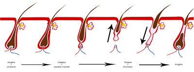 Je vous en parlais dans cet article, le cycle pilaire (cycle de pousse du cheveu) comporte trois phases : anagène, catagène, télogène.