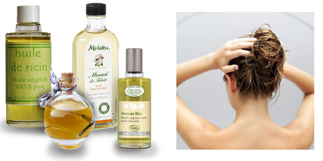 | Des huiles végétales, en bain d'huile avec un massage du cuir chevelu. |