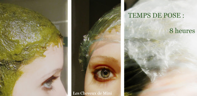 Franchement, j'ai mis à tout casser une minute à appliquer mon henné (merci les cheveux courts !). J'en ai profité pour masser le cuir chevelu avec la préparation avant de l'emballer bien proprement dans du cellophane et ensuite, par dessus, une serviette chaude.