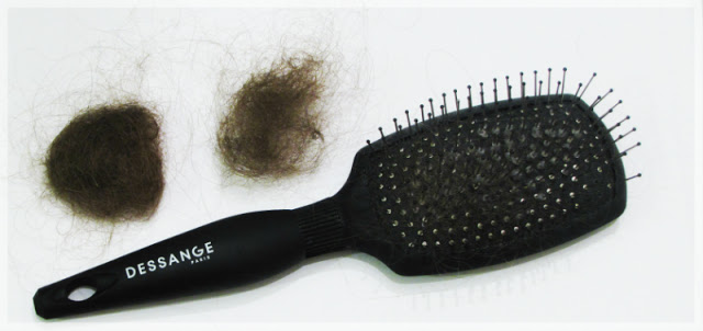 "J'ai toujours pensé avoir beaucoup de noeuds dans les cheveux, et, me les brosser depuis qu'ils sont longs, c'était un peu la croix et la bannière. J'avais tendance à me les brosser la tête en bas car concrètement, ce n'était pas possible autrement. J'essayais ensuite de les brosser normalement, pour pouvoir les attacher en arrière, comme à mon habitude. C'était très souvent, même après le premier brossage, très compliqué. Perdant patience assez rapidement, je n'avais trouvé qu'une solution pour y arriver : y aller franco. Résultat des courses, après chaque brossage, je perdais systématiquement cette bonne grosse touffe de cheveux que vous pouvez voir dans cet article, en photo, accompagné de ma brosse Dessange.