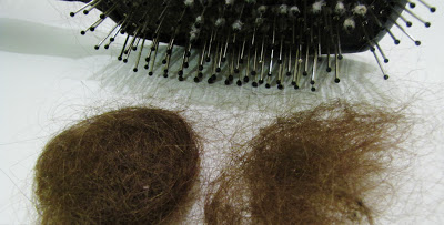 | A droite, les cheveux tombés lors d'un seul brossage... |