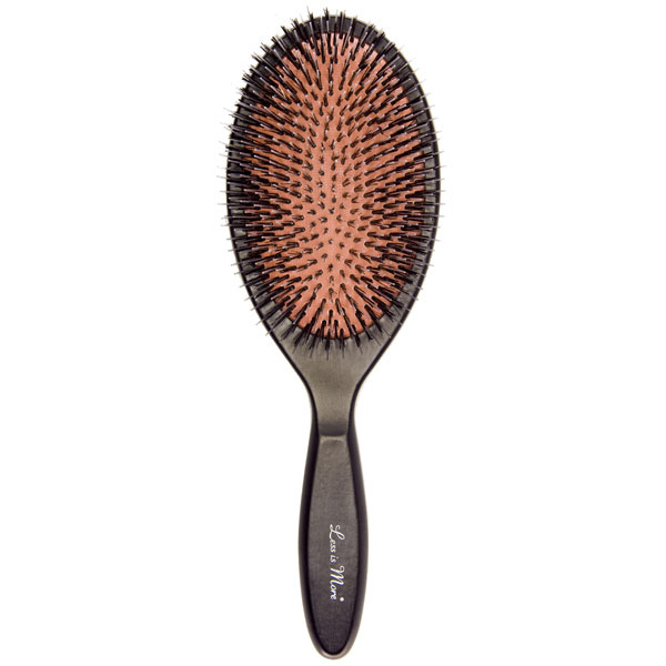| La brosse qui a remplacé la Dessange : Less is More, brosse en bois, poils de sanglier et nylon. |