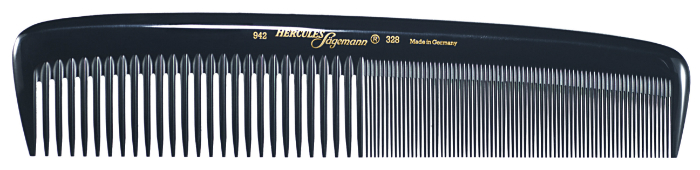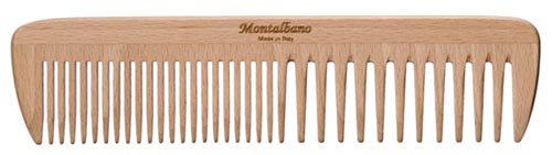 Je vous en parlais précisément dans cet article, le peigne en corne est celui qui a la meilleure affinité avec la kératine de nos cheveux, puisqu'il en est constitué lui-même. Il sert à finir le coiffage, lisser les écailles et faire briller les cheveux après le démêlage pour terminer ce dernier. L'idéal est, si vos cheveux sont raides et fins, d'avoir un peigne en corne à dents très serrées, et à l'inverse, pour des cheveux épais et bouclés, un peigne à dents plutôt larges.