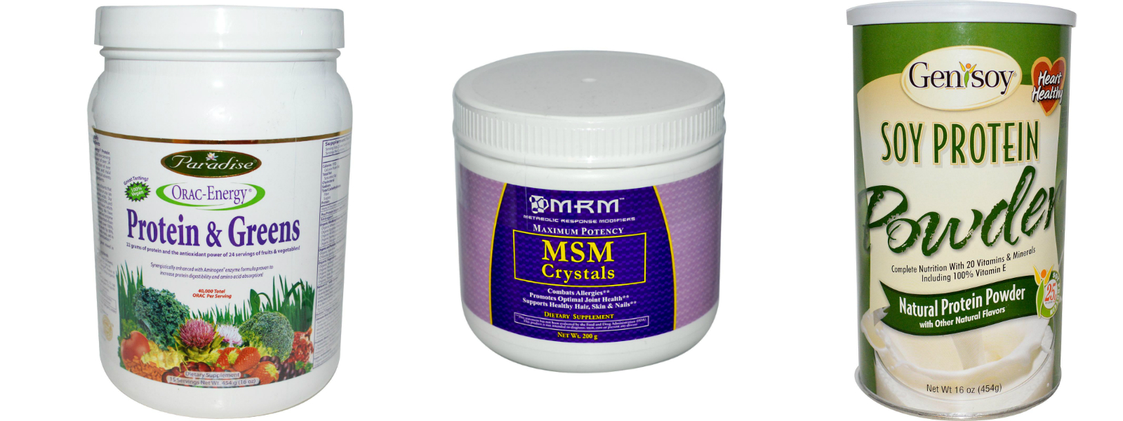 | Proteins&Greens, Paradise Herbs - MSM crystals, MRM - Soy Protein Powder, Genisoy |