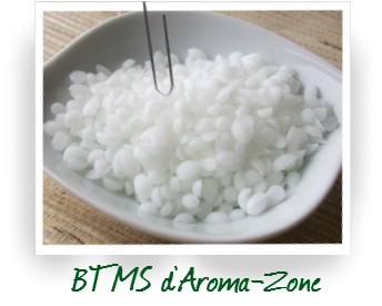 - Le BTMS est dispersible dans l'eau mais insoluble à cause de l'alcool qu'il contient : c'est cet alcool qui le rend occlusif. En éliminant cet alcool, on obtient du BTMS qui n'aura plus d'action occlusive sur les cheveux puisqu'il se rincera alors plus facilement.
