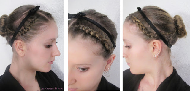 Et voilà, vous avez terminé cette coiffure. Vous pouvez ajouter un serre-tête ou un bandeau / headband pour cacher les séparations ou la laisser telle quelle.