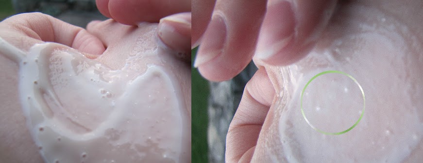 • La texture est très particulière. En effet, ce shampoing contient plein de petites billes qui fondent ou explosent lorsque l'on masse le cuir chevelu, ce qui donne une expérience assez nouvelle et très agréable. Bien plus agréable qu'avec de plus gros grains, de sucre ou de marc de café ! Le shampoing moussant peu, il est préférable de bien masser, ajouter de l'eau petit à petit puis masser à nouveau... Enfin avec un tel parfum ça n'a rien d'un calvaire !