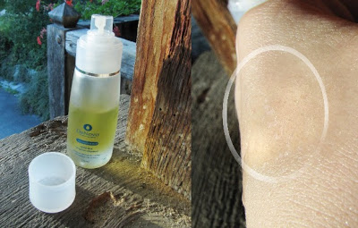 La consistance est très fluide, c'est une texture légère, elle n'est pas du tout épaisse comme une huile végétale. Le spray est très fin. Pour l'utiliser, je la vaporise (une seule pression) dans ma main, je la fais chauffer en frottant mes mains puis je l'applique sur l'ensemble de la chevelure.