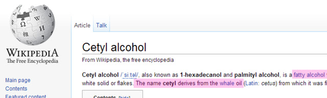On va commencer par le cetyl alcohol. On commence par simplement faire la recherche, en tapant tout simplement « cetyl alcohol » et on va sur la page wikipédia.
