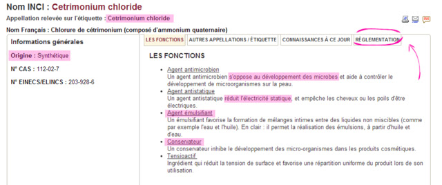 | fiche du Cetrimonium chloride sur L'observatoire des cosmétiques |
