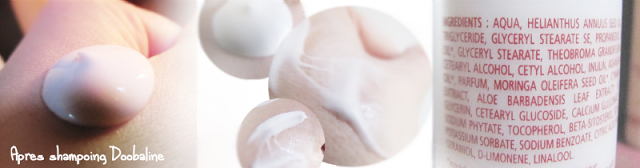 shampoing & après-shampoing Doobaline, et rinçage au vinaigre.
