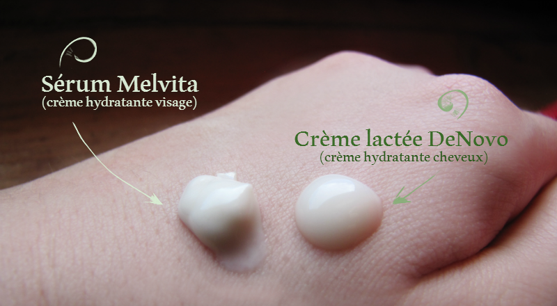 | Comparaison : texture du sérum Melvita et de la crème lactée DeNovo |