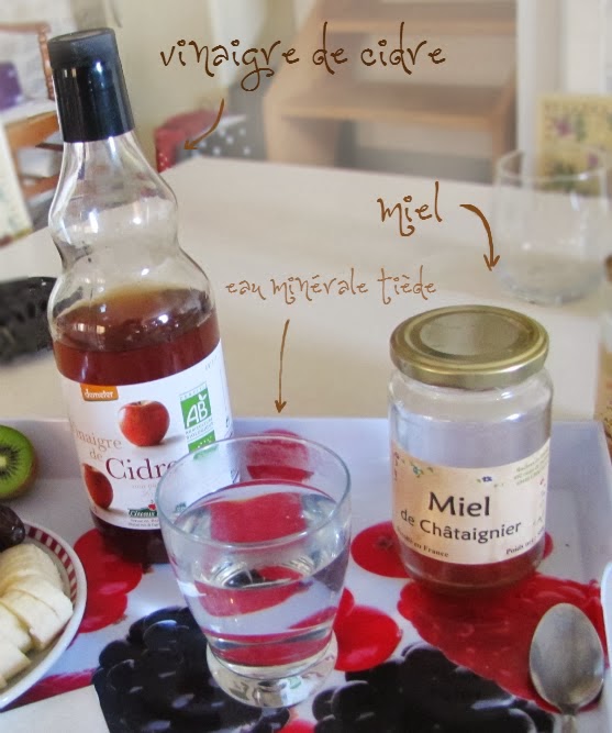 J'ai donc changé mon alimentation: boire + d'eau, manger sain, etc.. J'ai même commencé la "potion" vinaigre/miel pour une parfaite detox..