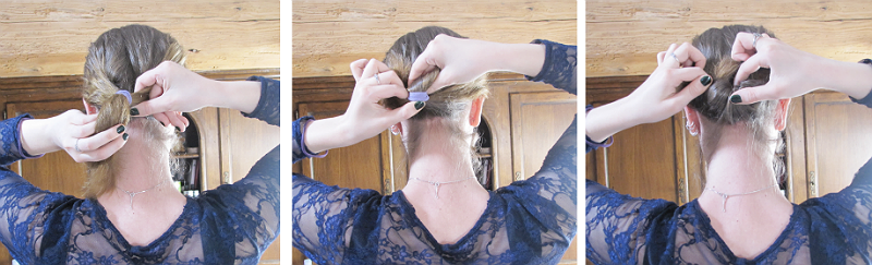 J'aime beaucoup mettre les headbands bijou "à l'envers", ça donne un effet particulier à la coiffure. Plus vos cheveux sont longs, plus il faudra faire la queue de cheval haute pour pouvoir enrouler les cheveux par la suite. Vous pouvez également piquer des petites pinces ou barrettes dans votre coiffure si vous n'avez pas de headband. C'est également sublime avec de vraies fleurs bien sûr !