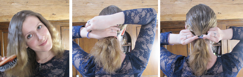 Commencez par brosser vos cheveux. Attachez les ensuite en queue de cheval basse mais pas trop, descendez un peu l'élastique puis écartez les cheveux au dessus de l'élastique pour former un creux.