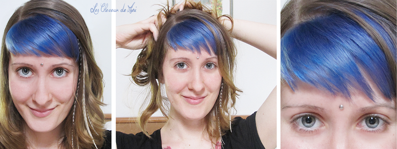 Ayant envie (et surtout, besoin) de changement, j'ai voulu tester quelque chose d'éphémère et facile à éliminer : une frange de couleur. La frange est parfaite pour le changement, car elle repousse très vite, ne coûte pas cher à colorer / décolorer, et quand on n'en veut plus il suffit de 4 mois maximum pour faire disparaître la couleur.