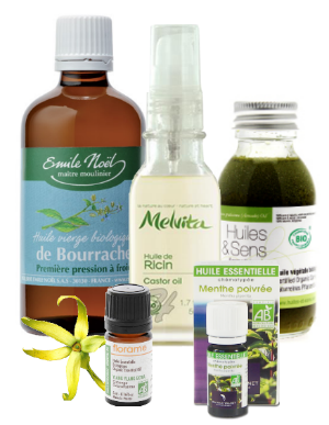 Le jour de votre shampoing, un bain d'huile serait parfait ; à appliquer avec un massage et à laisser poser une demie heure pour le côté nourrissant et protecteur ensuite. Je vous conseille une recette avec une synergie d'huiles connues pour stimuler la pousse, et éventuellement quelques gouttes huile essentielle (l'une ou l'autre) :