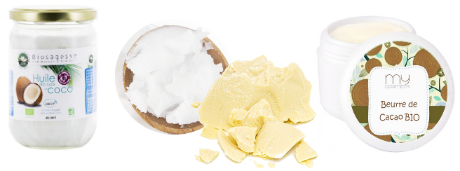 Je vais donc me tourner vers les beurres d'olive et d'amande douce, naturellement souples à température ambiante voire un peu huileux, et l'huile de coco. Je pense utiliser un peu les trois, pour profiter des propriétés de chacun. Je viendrai donner des nouvelles !