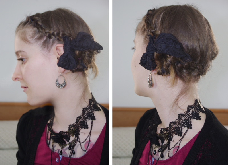 Cette coiffure peut avoir un aspect très cérémoniel, lorsqu'elle est portée avec un beau foulard en soie ou avec quelques perles piquées dans les tresses, par exemple. Cependant, elle peut très bien être portée tous les jours, et c'est ce que je fais en ce moment ; je trouve que c'est la coiffure parfaite pour camoufler ma repousse de frange et dégager mon visage.