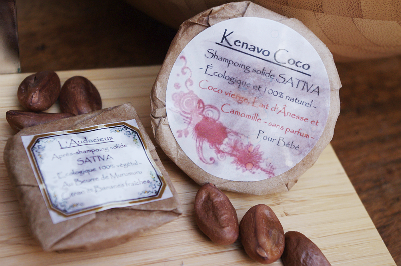 Sativa est une petite marque qui propose des savons, divers soins, et surtout - c'est ce qui nous intéresse en particulier lorsque l'on est chevelue - des shampoings et après-shampoings solides. Le tout est fait maison, de fabrication artisanale, et c'est ce qui m'a particulièrement attirée chez cette marque. De plus, vous allez le voir, les ingrédients utilisés sont particulièrement intéressants.