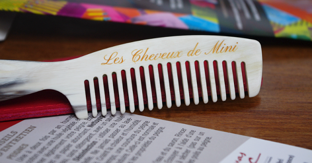 Mon peigne provient du site Thomas Liorac. Il s'agit du modèle cap horn de poche (il mesure 15 centimètres) mais il existe le même en plus grand format ! Un petit coup de coeur pour la gravure au nom de mon blog - la prochaine fois, j'en prendrai certainement un avec mon prénom.