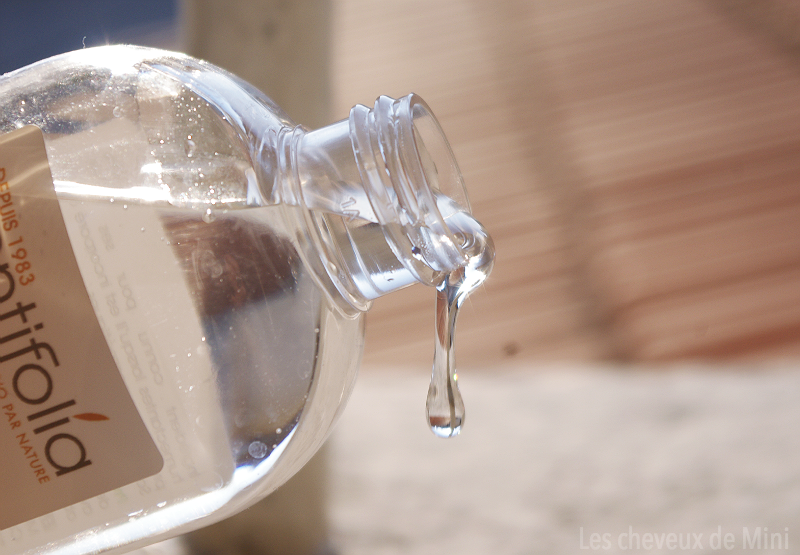 Shampoing doux : 80ml d'infusion de noix de lavage - 10ml de glycérine - 10ml de vinaigre de cidre.
